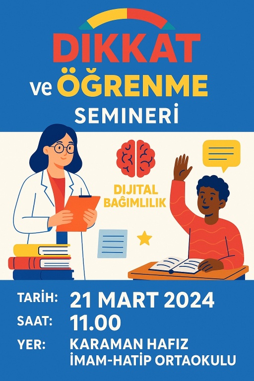 Seminerde, dikkat süresini artırma yolları, odaklanmayı engelleyen faktörler, sınav döneminde zihinsel verimliliği artırma teknikleri gibi konular ele alındı. Öğrenciler, günlük hayatlarında uygulayabilecekleri pratik öneriler ve egzersizler hakkında bilgi edindiler.